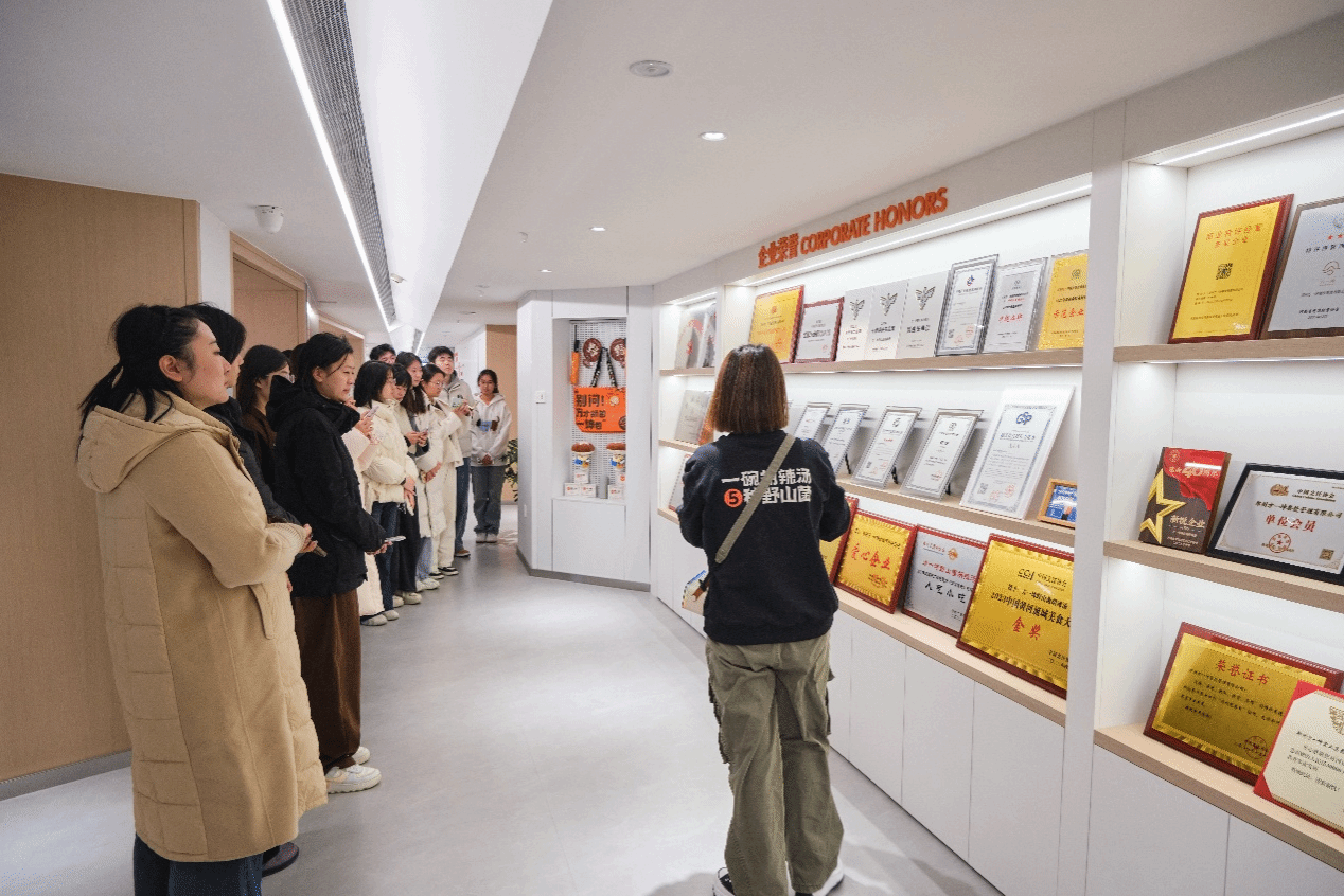 活动伊始,人力资源部总监李东东带领学生参观集团办公区,结合文化墙系统讲解企业发展历程、品牌理念、团队建设及荣誉成就。在随后的分享环节,创始人、餐饮总经理金少坤讲述了品牌从创立到深耕中原餐饮标杆的创业故事,他特别强调“学习力与持续力”的重要性,分享“复杂事简单化、简单事重复做”的创业心得。人力资源部行政经理郑雪详细讲解了企业发展全貌,重点阐释“讲原则、有敬畏、顾大局、懂感恩、思进取、敢担当”的核心价值观,以及“体力、心力、愿力、真诚”的团队文化,并介绍企业通过月度主题活动践行国产av的实践举措。在方一坤旗舰门店体验环节中,新媒体运营经理郭子恺带领学生沉浸式观察运营流程、服务标准与消费场景,学生们一边品尝门店美食,一边围绕实际问题积极提问探讨。