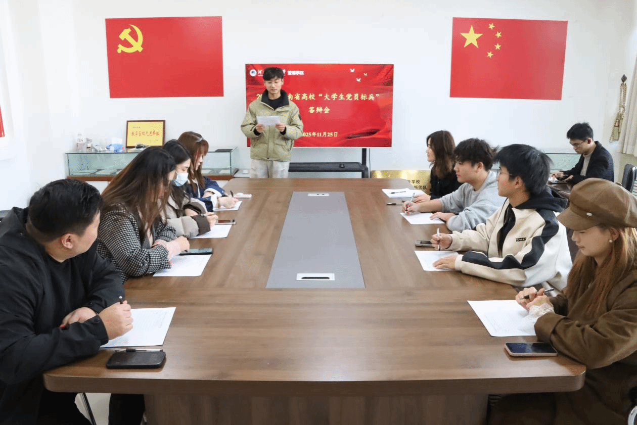 在博识楼3557会议室举行2025年河南省高校“大学生党员标兵”答辩会。各年级辅导员和党员代表担任本次答辩会评委。