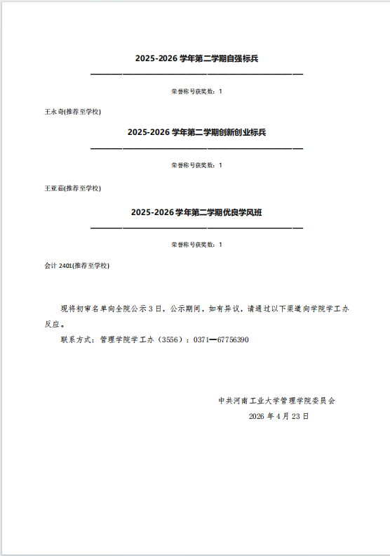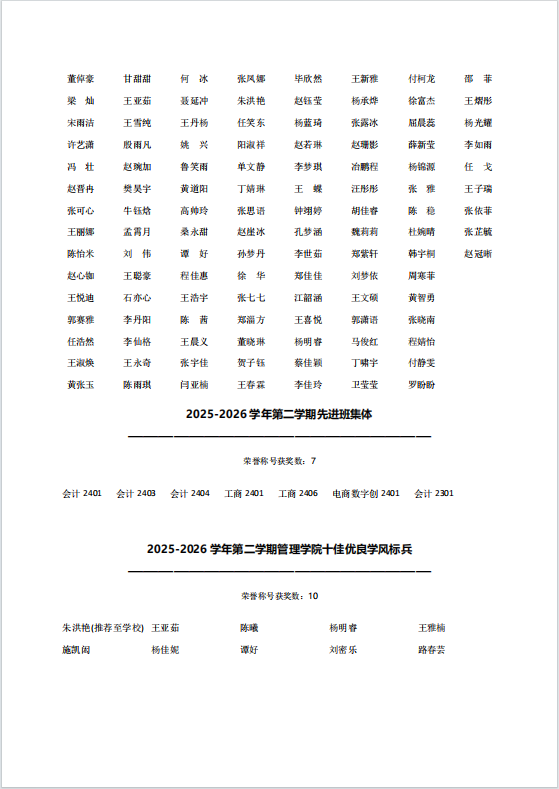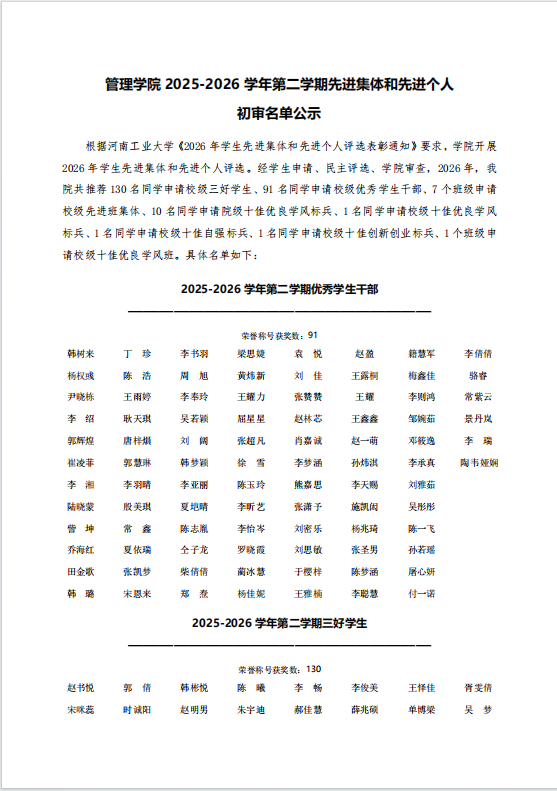 国产av 2025-2026学年第二学期先进集体和先进个人初审名单公示