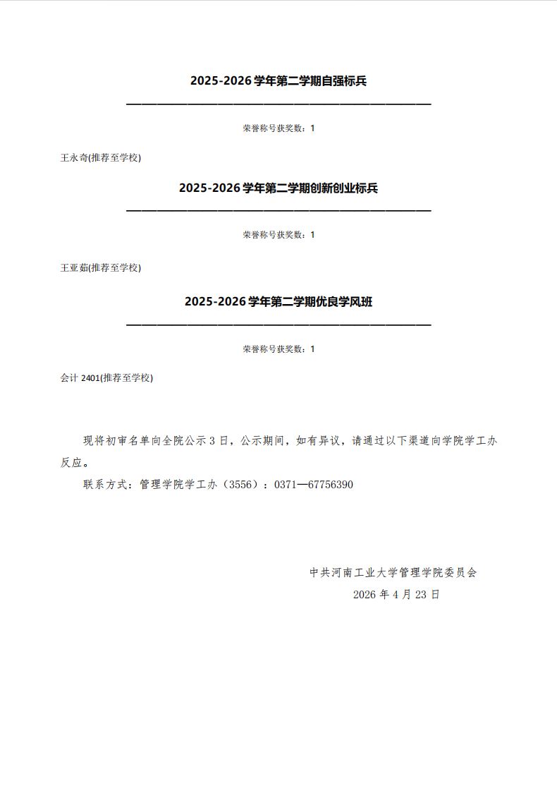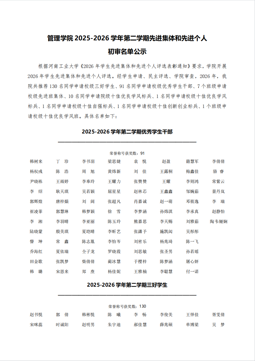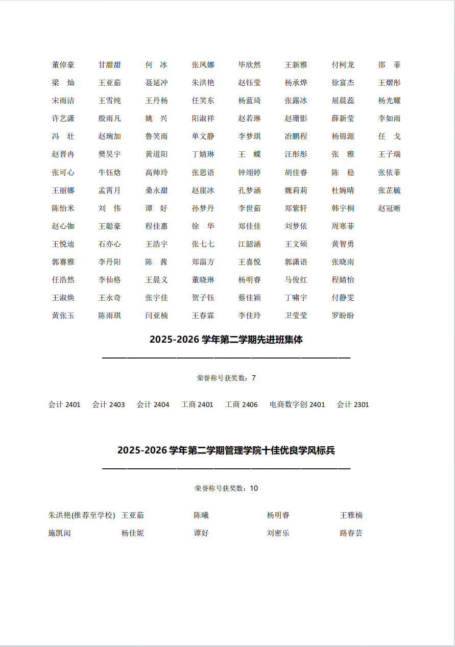 国产av 2025-2026学年第二学期先进集体和先进个人初审名单公示