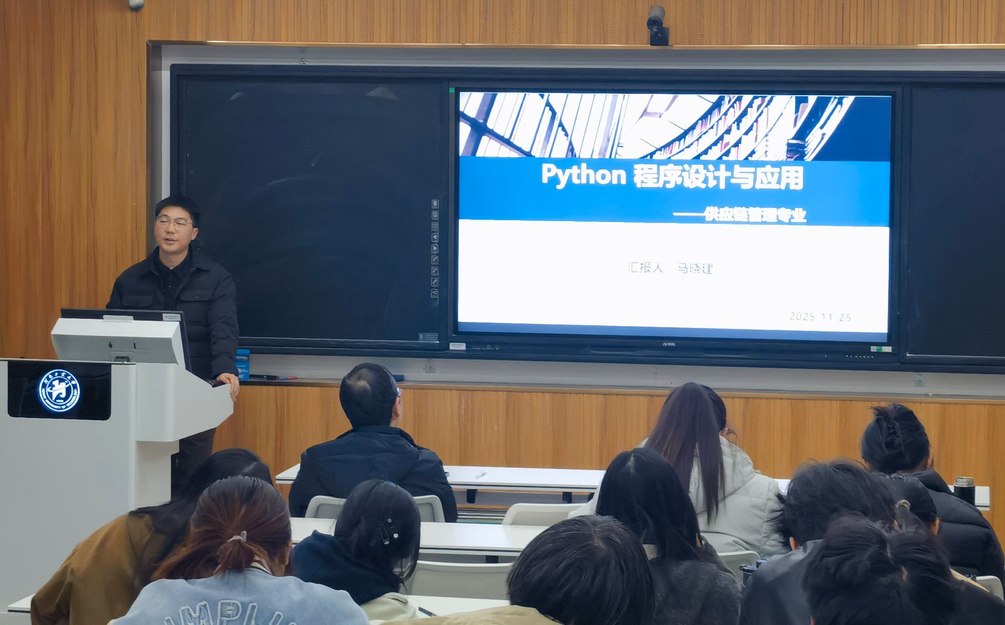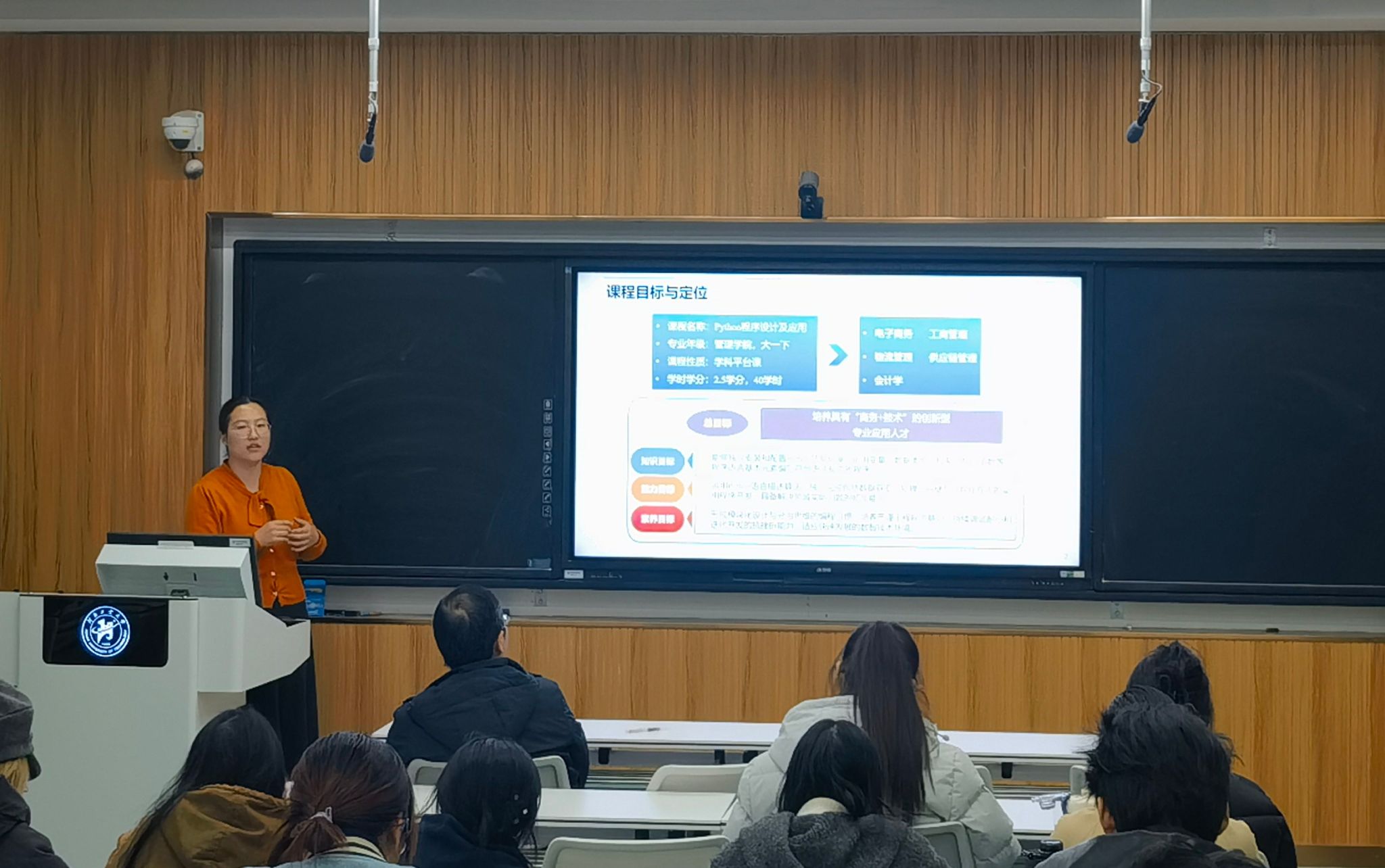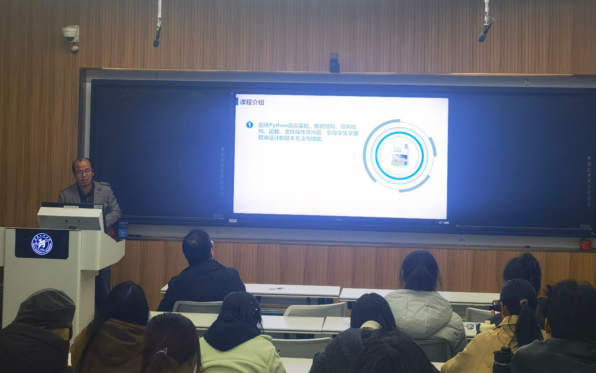 于3228智慧教室组织了学科平台课《Python程序设计及应用》教学观摩研讨活动。副院长韩江、课程组负责人雷兵教授、课程组全体教师以及24级数字创专业全体学生参与此次活动。