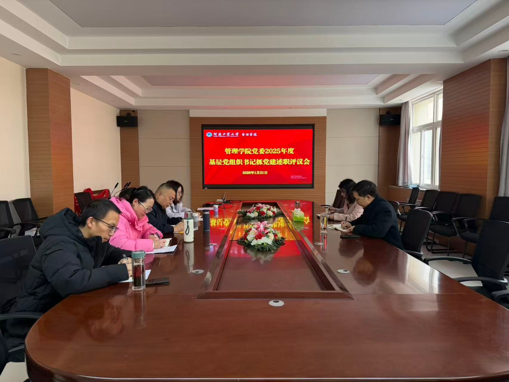 会上,各教工党支部书记依次述职,主要从各支部工作开展情况、存在问题和努力方向三个方面进行,重点围绕政治理论学习、三会一课、党建业务融合、支部规范化建设、支部活动开展等方面展开。汇报中强化问题导向,真述问题、述真问题,既亮出了 “成绩单”,晒出了 “问题单”,拿出了“任务单”,充分展现了各支部一年来党建工作的成效与思考。